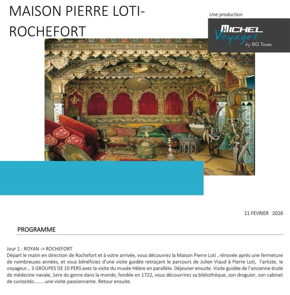 Pour les adhérents de Royan Accueil , programmation d’une sortie journalière. – MAISON PIERRE LOTI – ROCHEFORT, le 11...