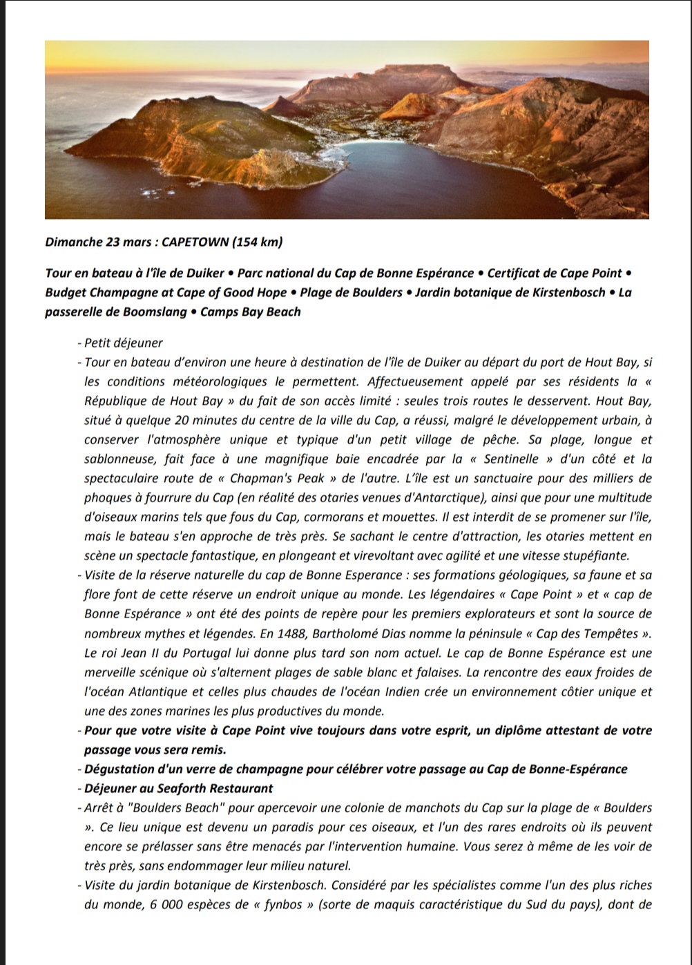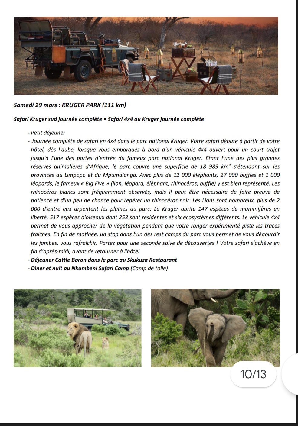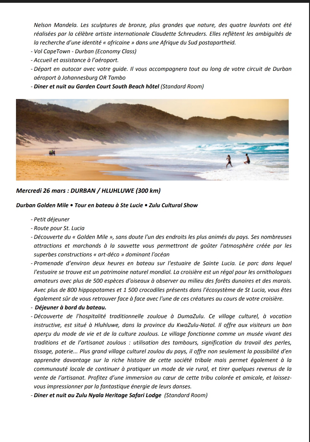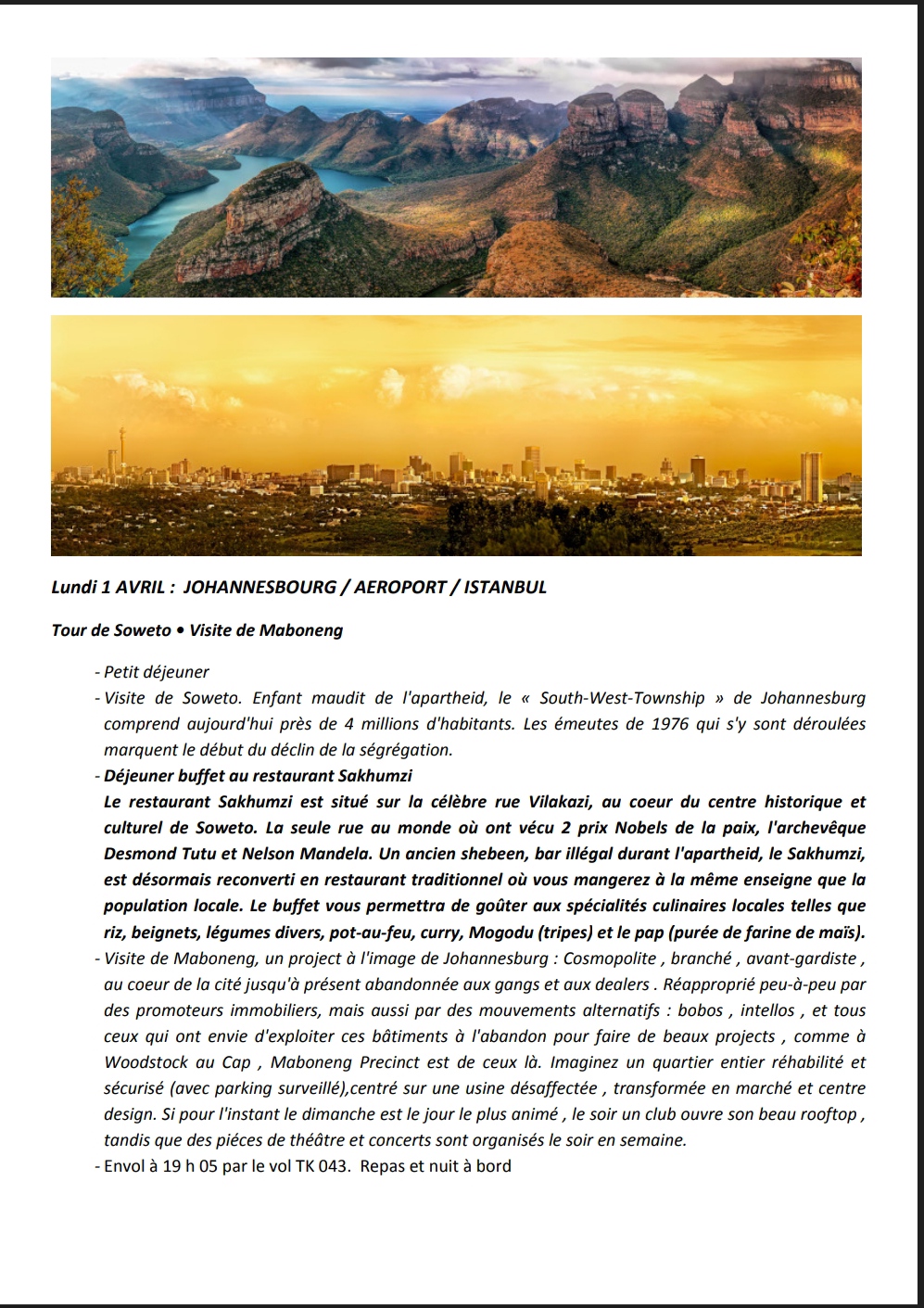 PROGRAMME DU VOYAGE EN AFRIQUE DU SUD