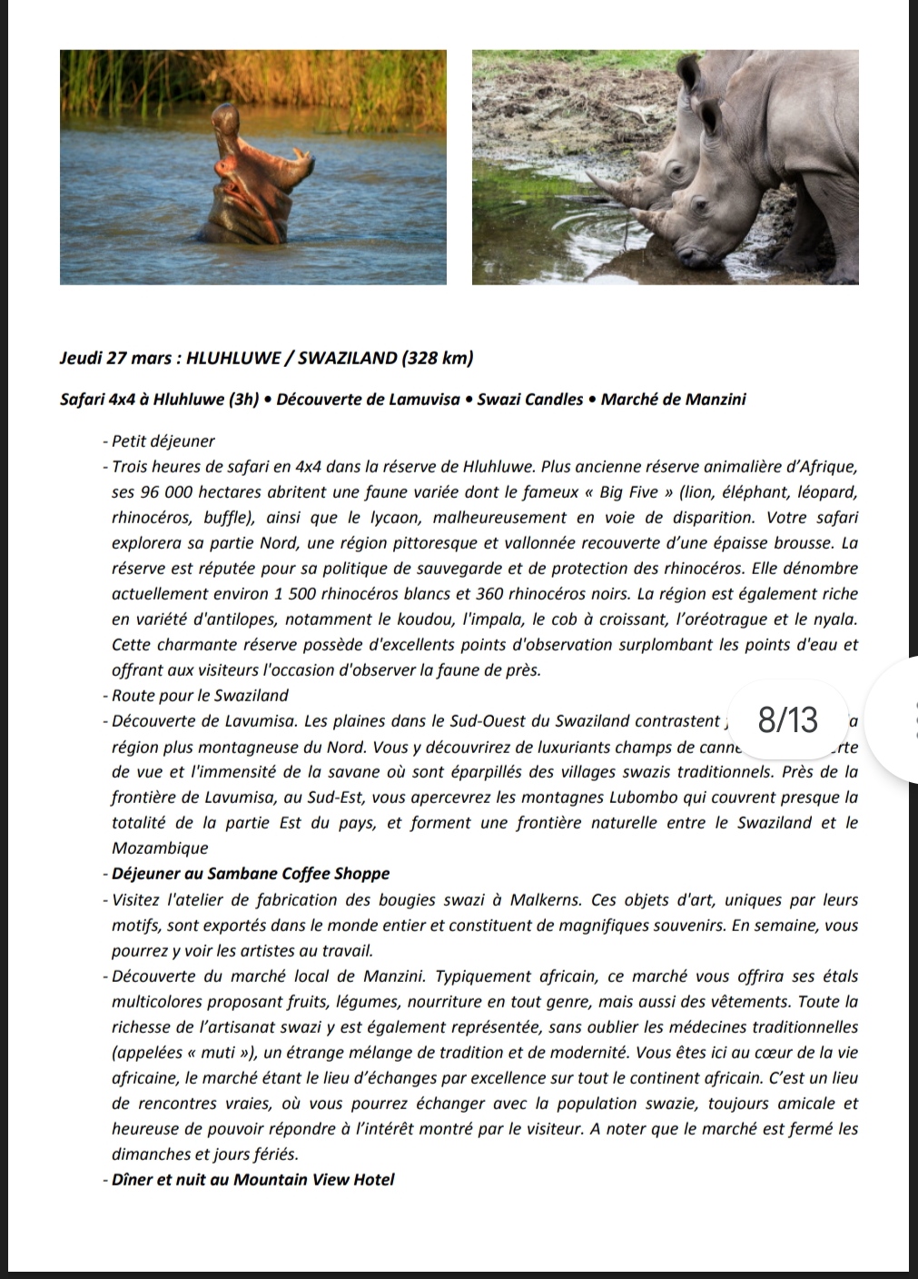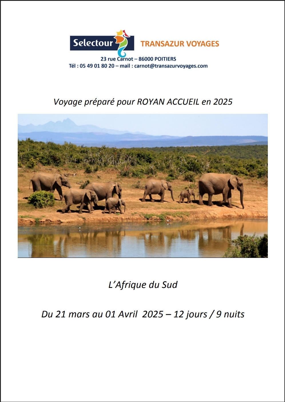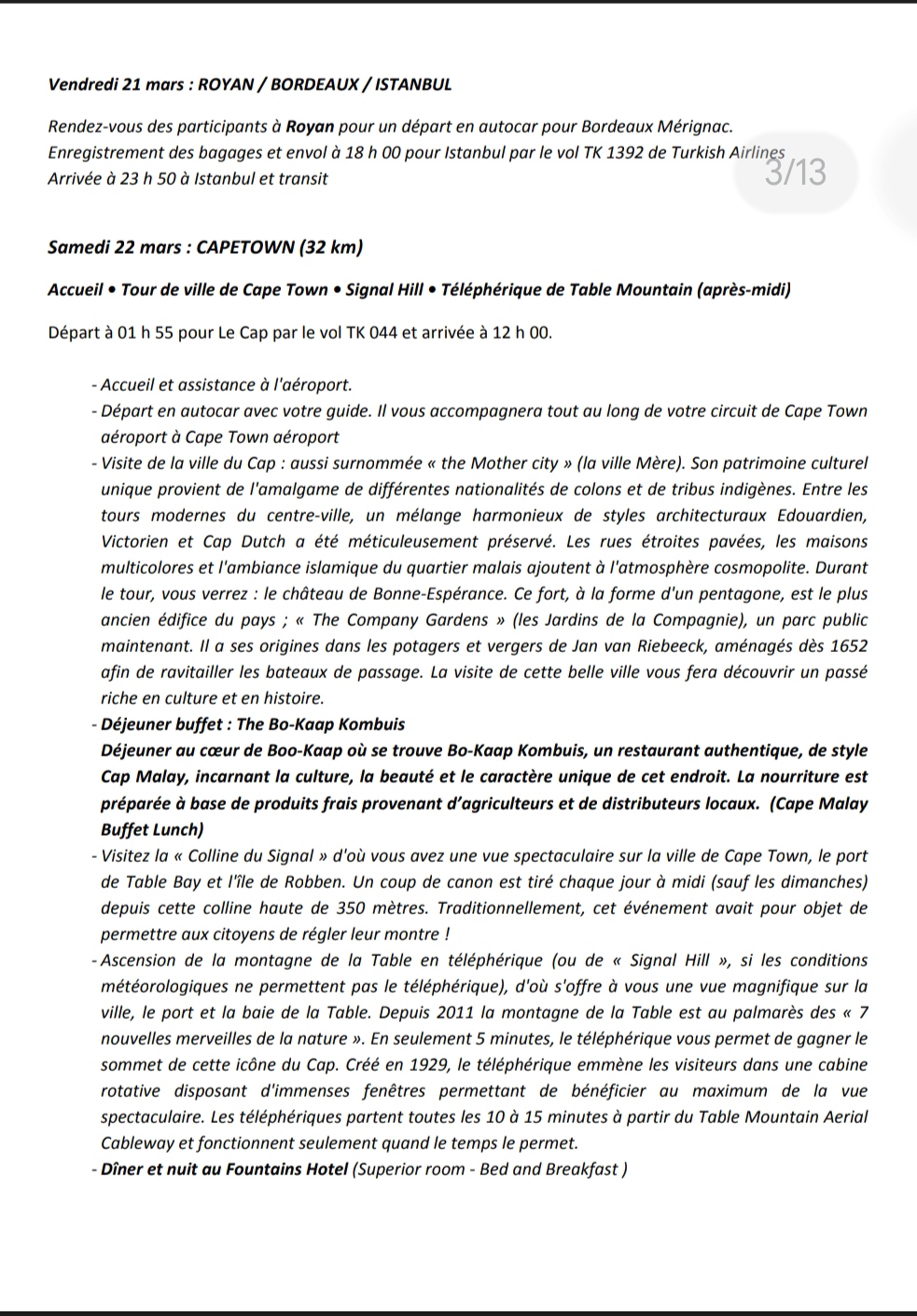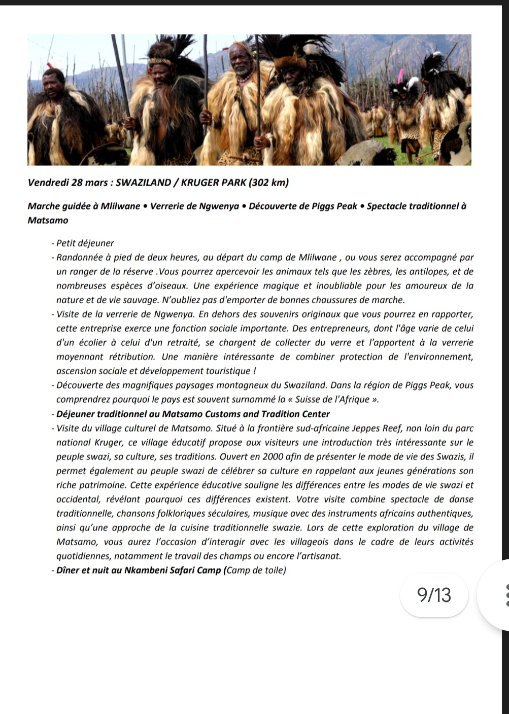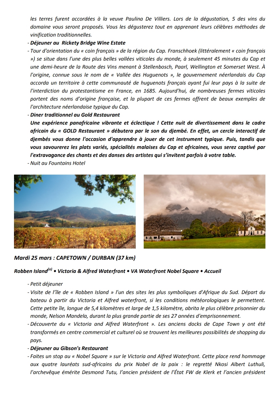 PROGRAMME DU VOYAGE EN AFRIQUE DU SUD