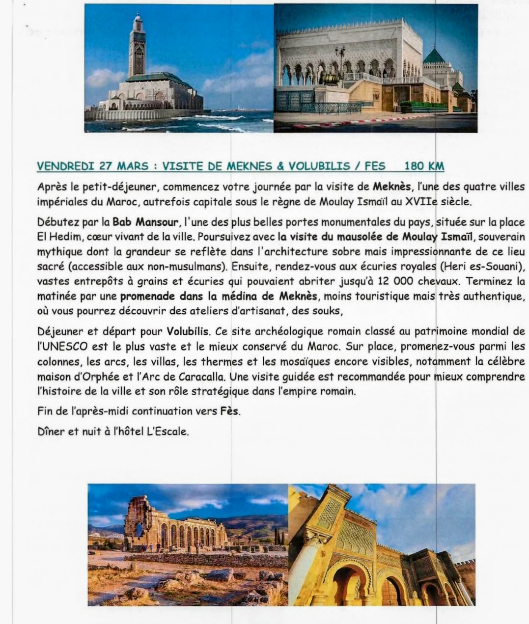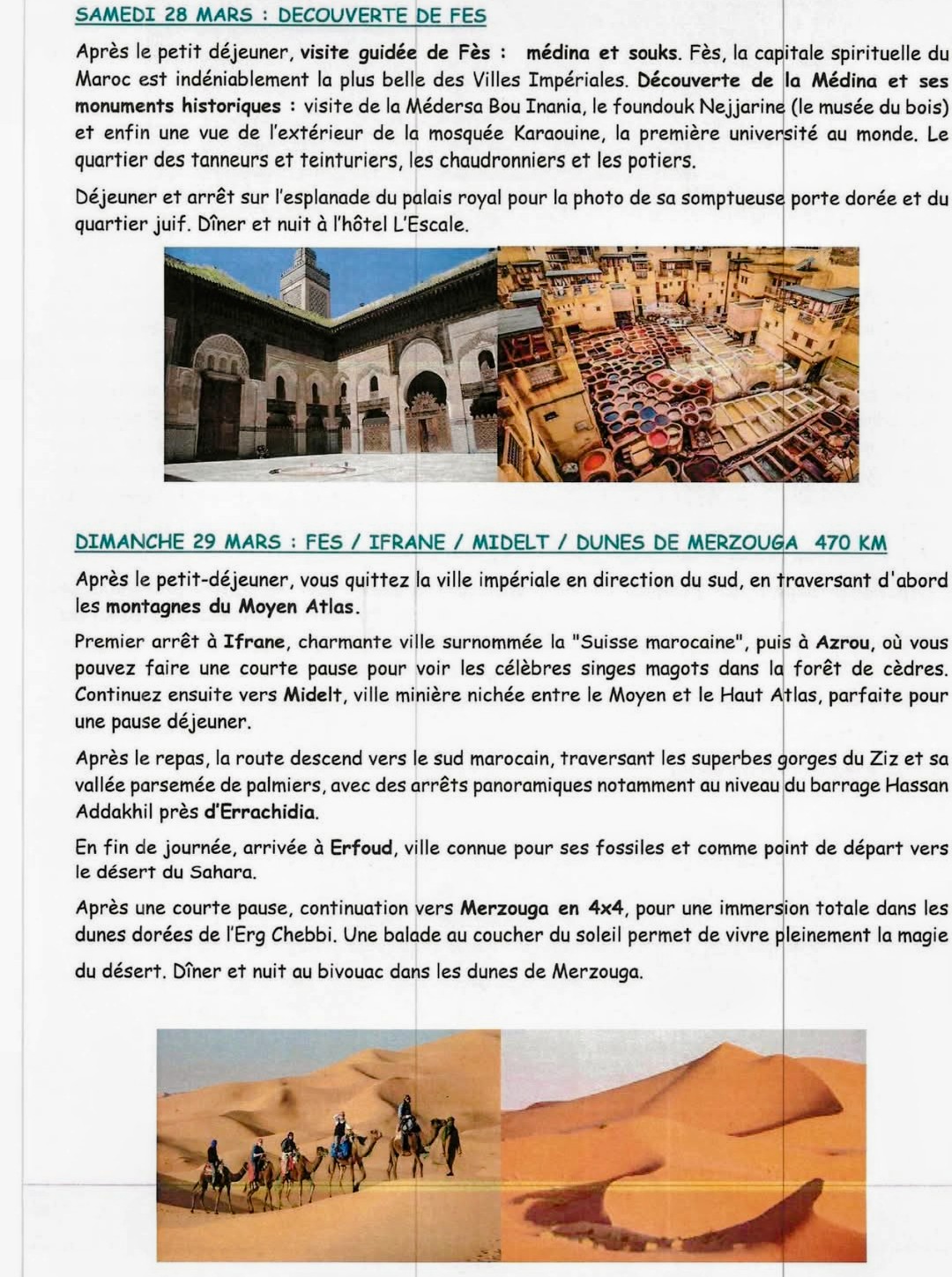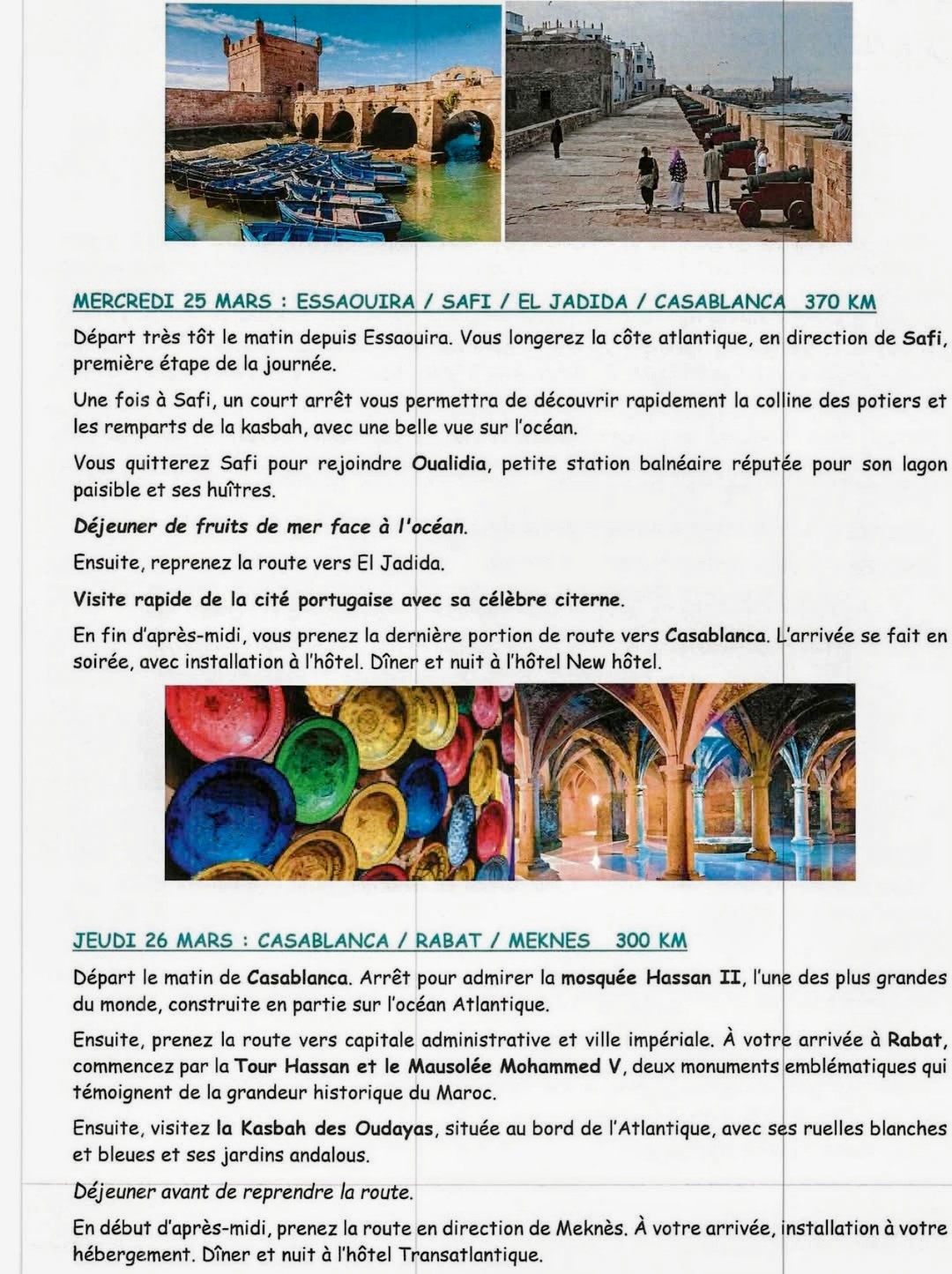 – MAROC du 22 Mars au 01 Avril 2026 . Prix : 1 645 € / personne. Il reste 4 places. Inscriptions les 4, 6 et 13 Novembre 2025 à l’Espace Royan Accueil, 18 Rue Notre Dame 17 200 ROYAN.