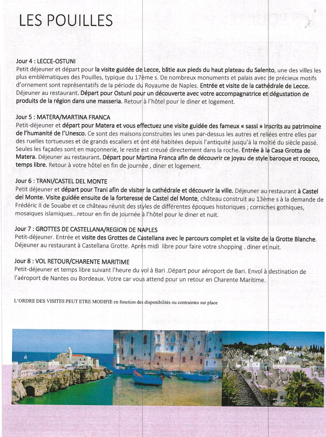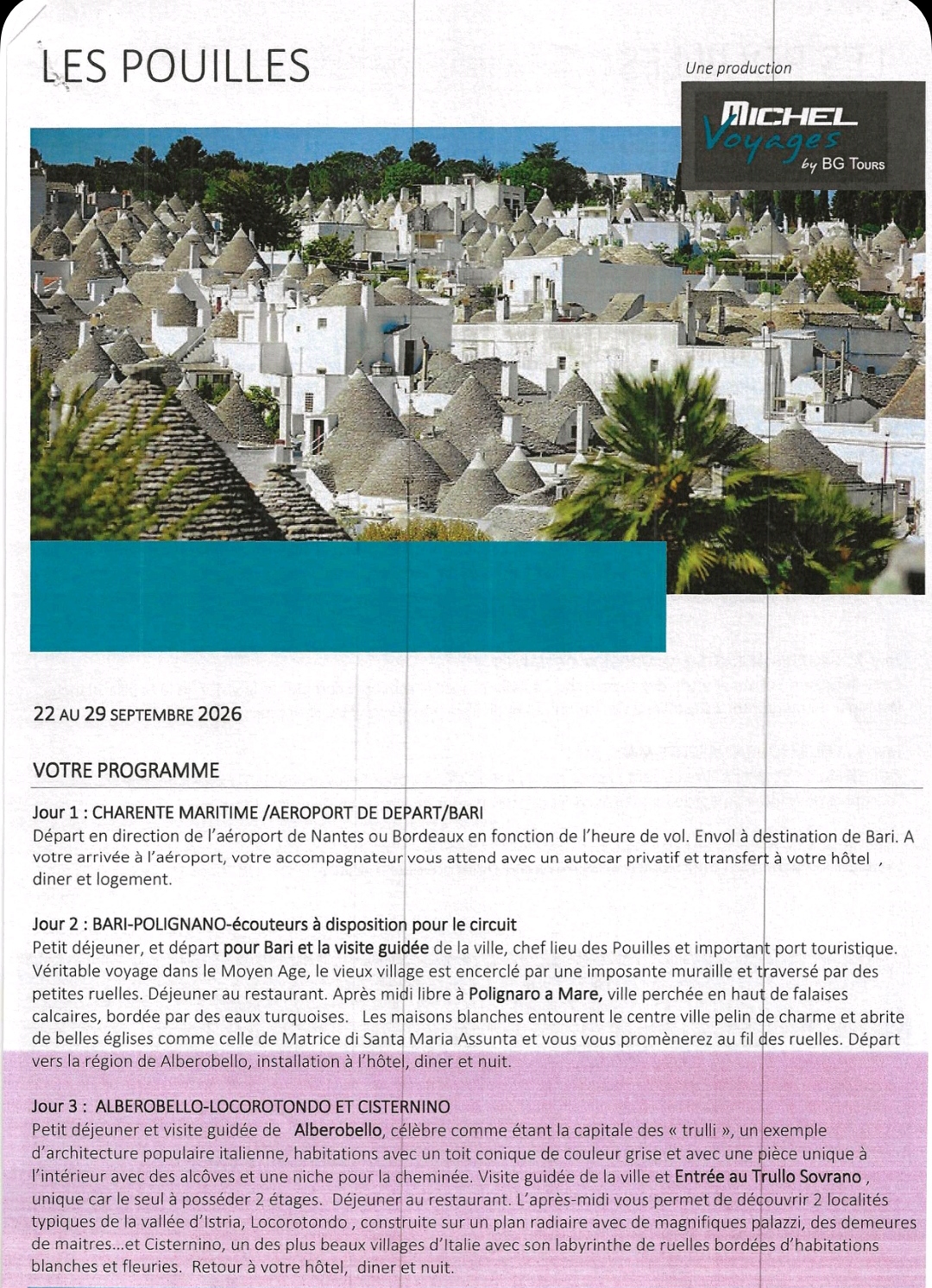 Les Pouilles du 22 au 29 septembre 2026. Complet mais une liste d’attente est ouverte si vous voulez vous inscrire